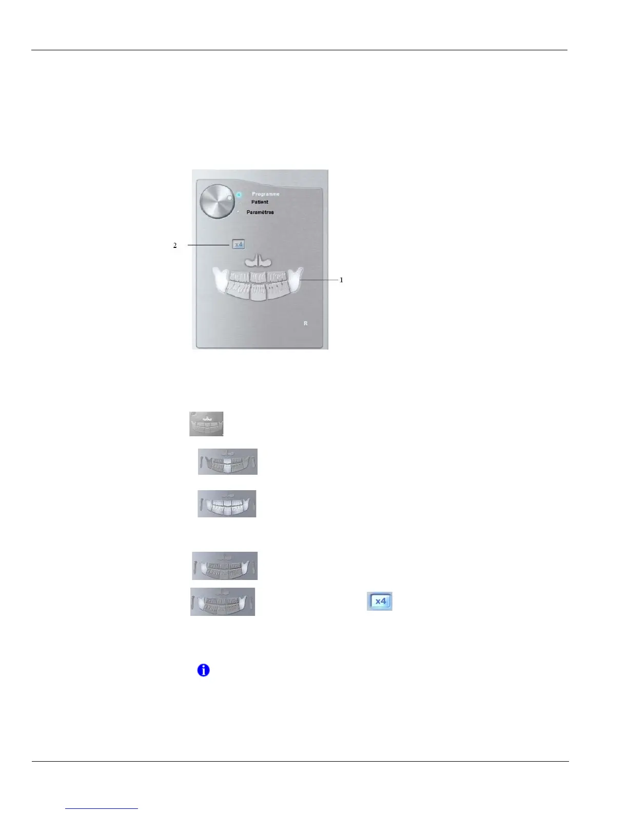 The Panoramic Program pane enables you to choose different radiological exams. The