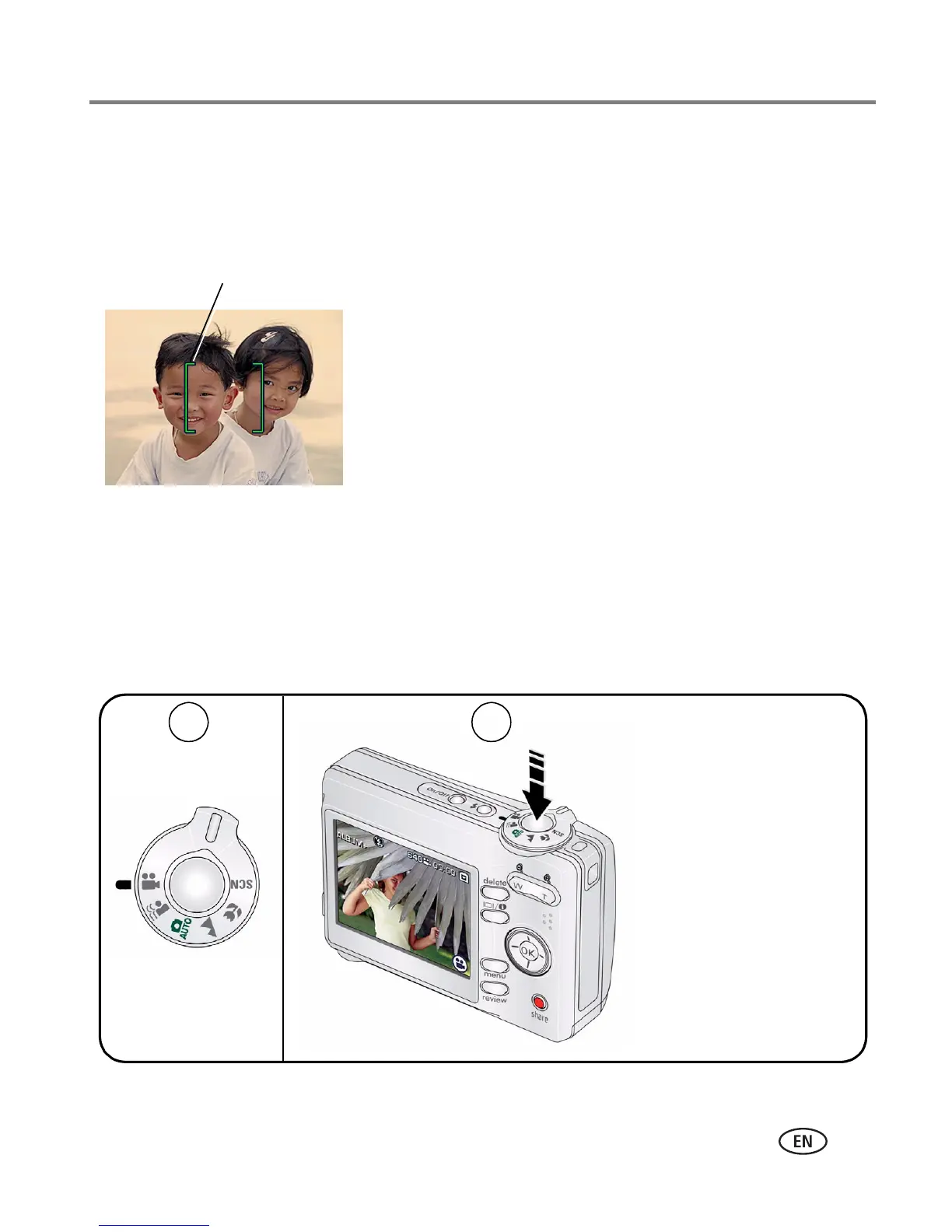 Auto mode (and in SCN modes designed for pictures of people). See page 25.