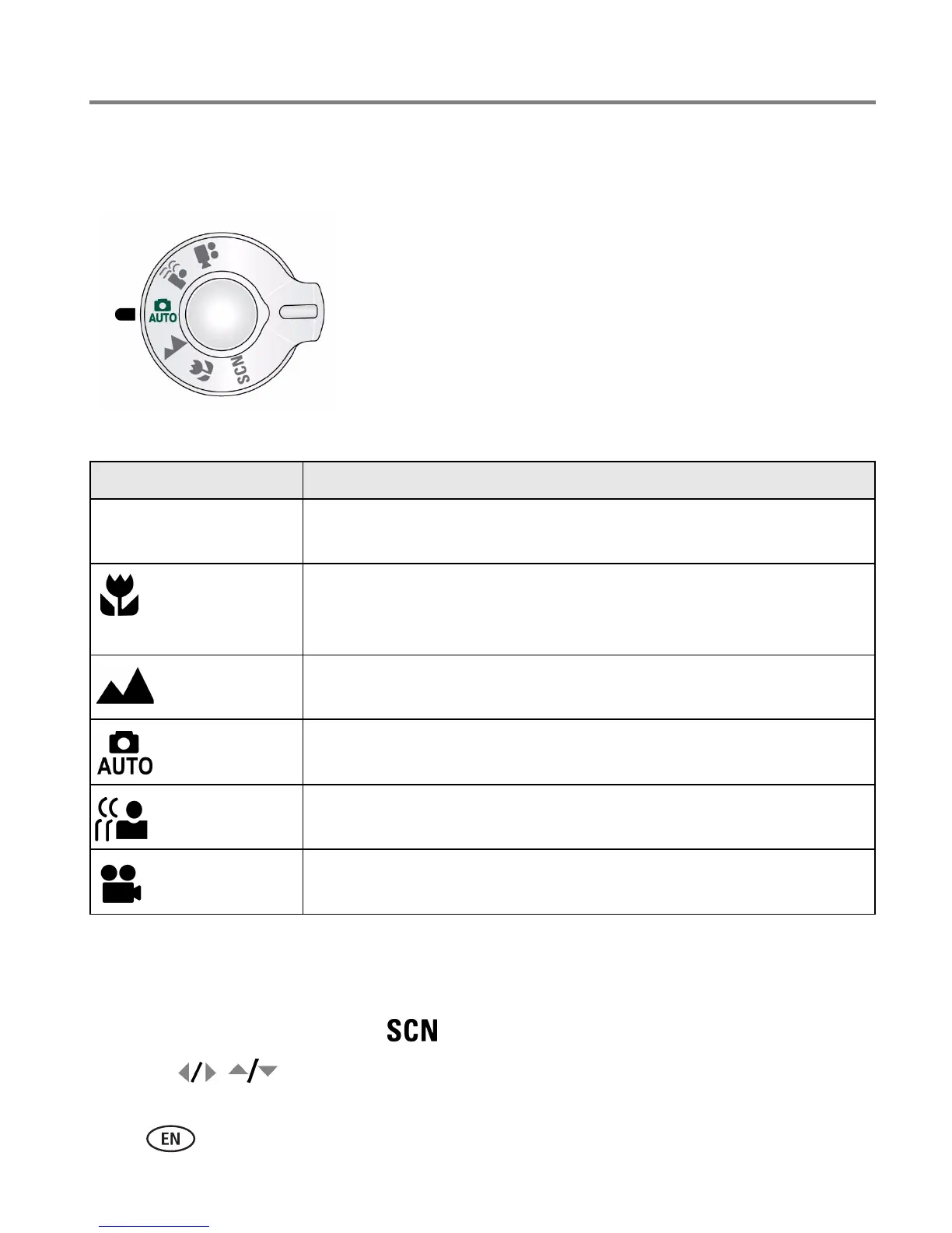 2 Press to display Scene mode descriptions.