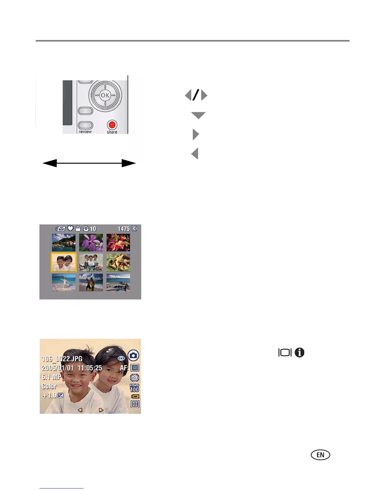 1 Press the Review button.