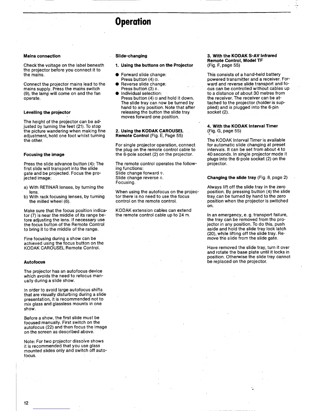 Kodak Carousel S-AV 1050 - Projector Operation; Power and Levelling; Image Focusing Technique; Autofocus Functionality