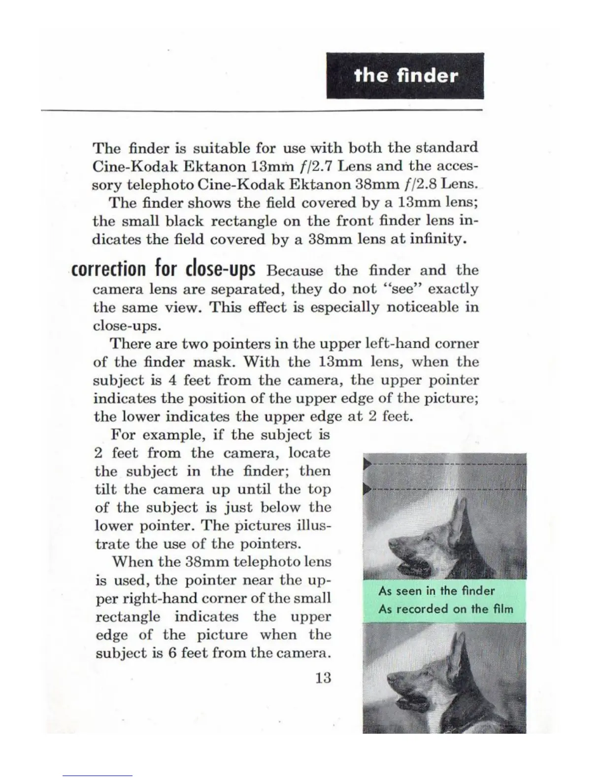 Kodak Cine Ektanon Reliant Camera - The Finder; Correction for Close-Ups