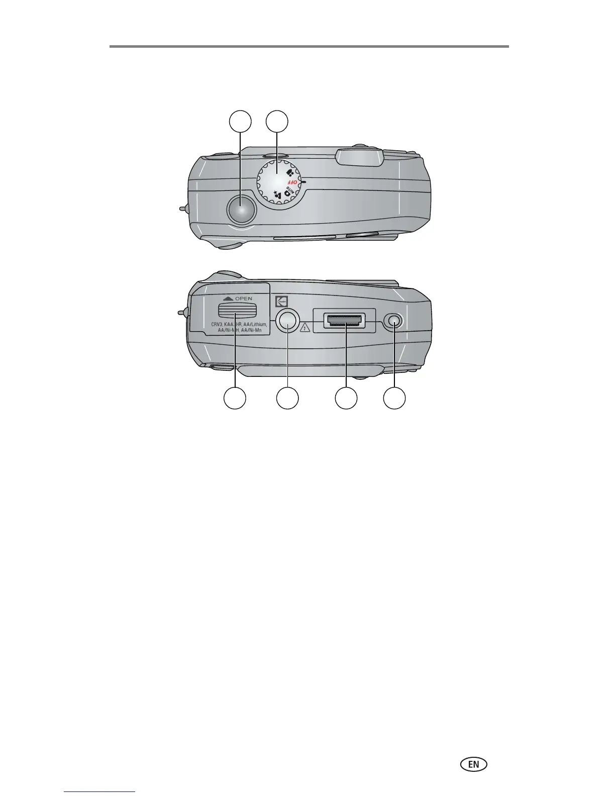 2 Mode dial/Power 4 Tripod socket/locator for dock