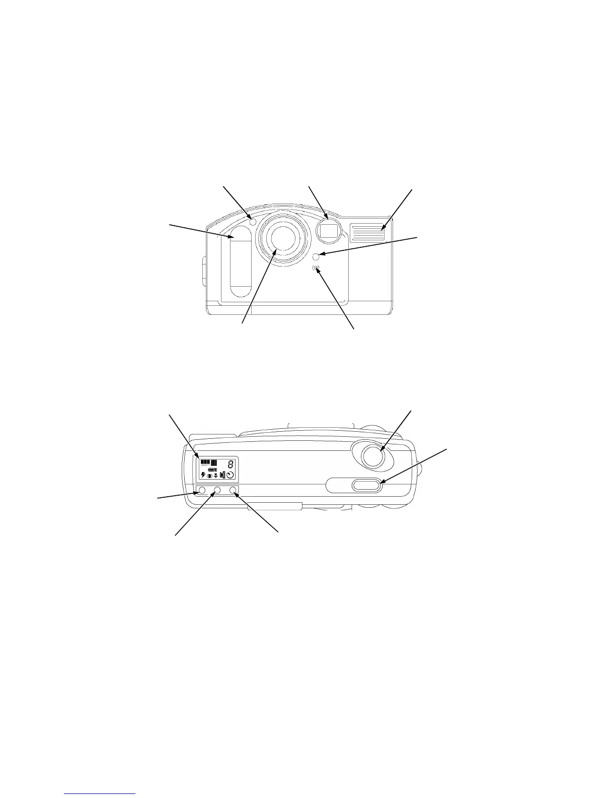 The following illustrations identify the features of the DC210+ camera.