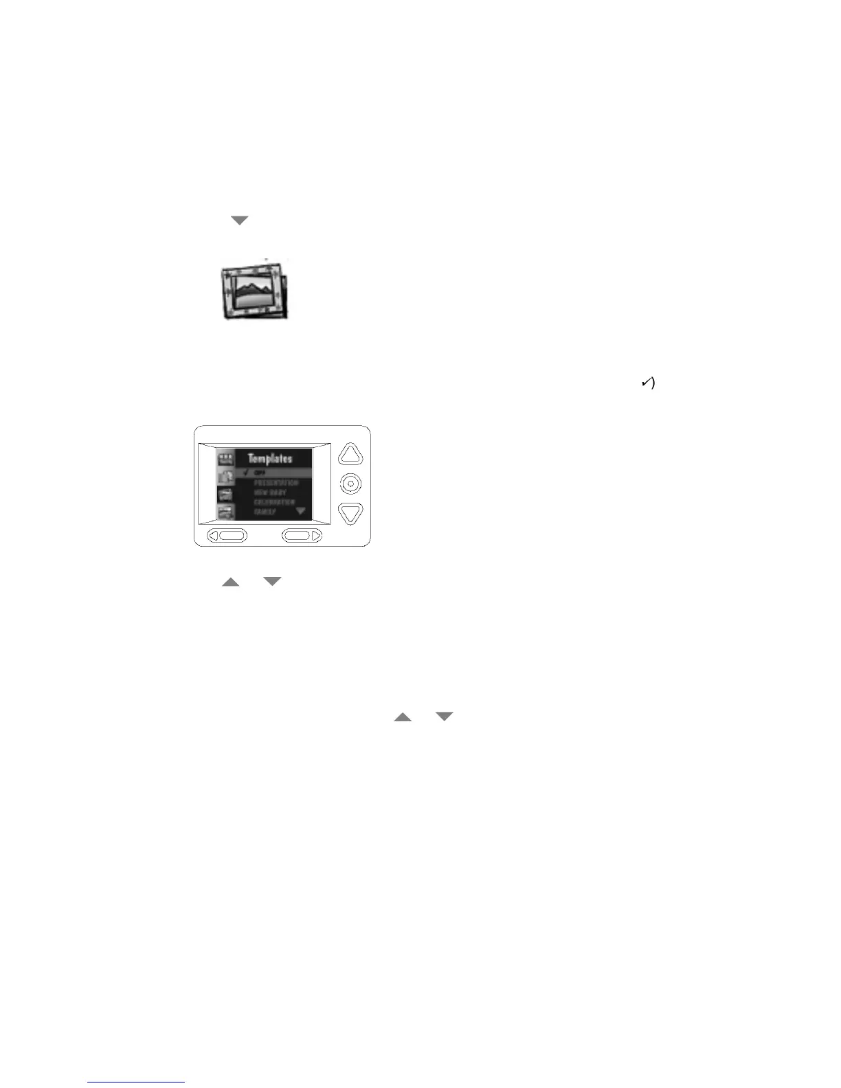 To turn off the template feature, press a or button until OFF is highlighted, and