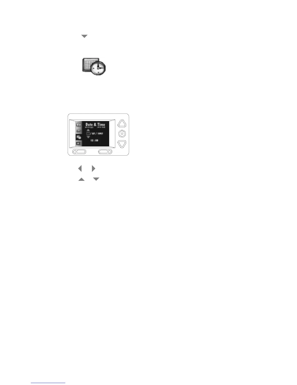 3. Press the button until the Date/Time icon (shown below) is highlighted on the Pref-