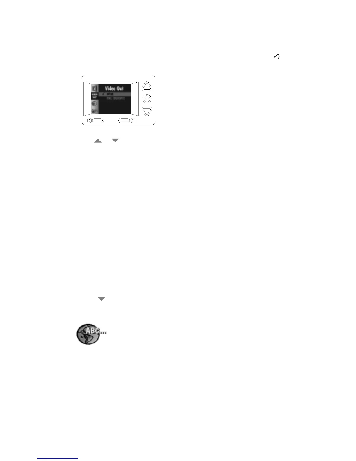 The Language screen selects a language interface for the camera. When you choose a spe-