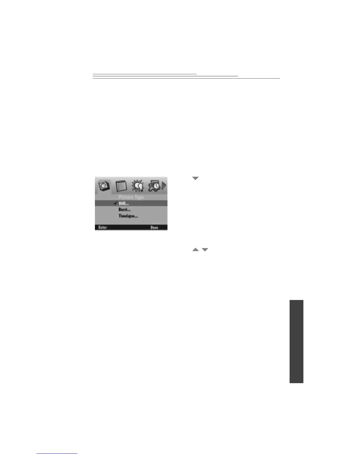 1 Press to highlight the type of picture