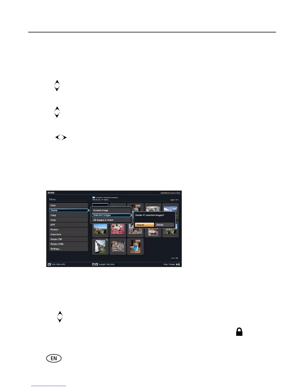 1 Select single or multiple pictures/videos to protect from deletion (see page 15).