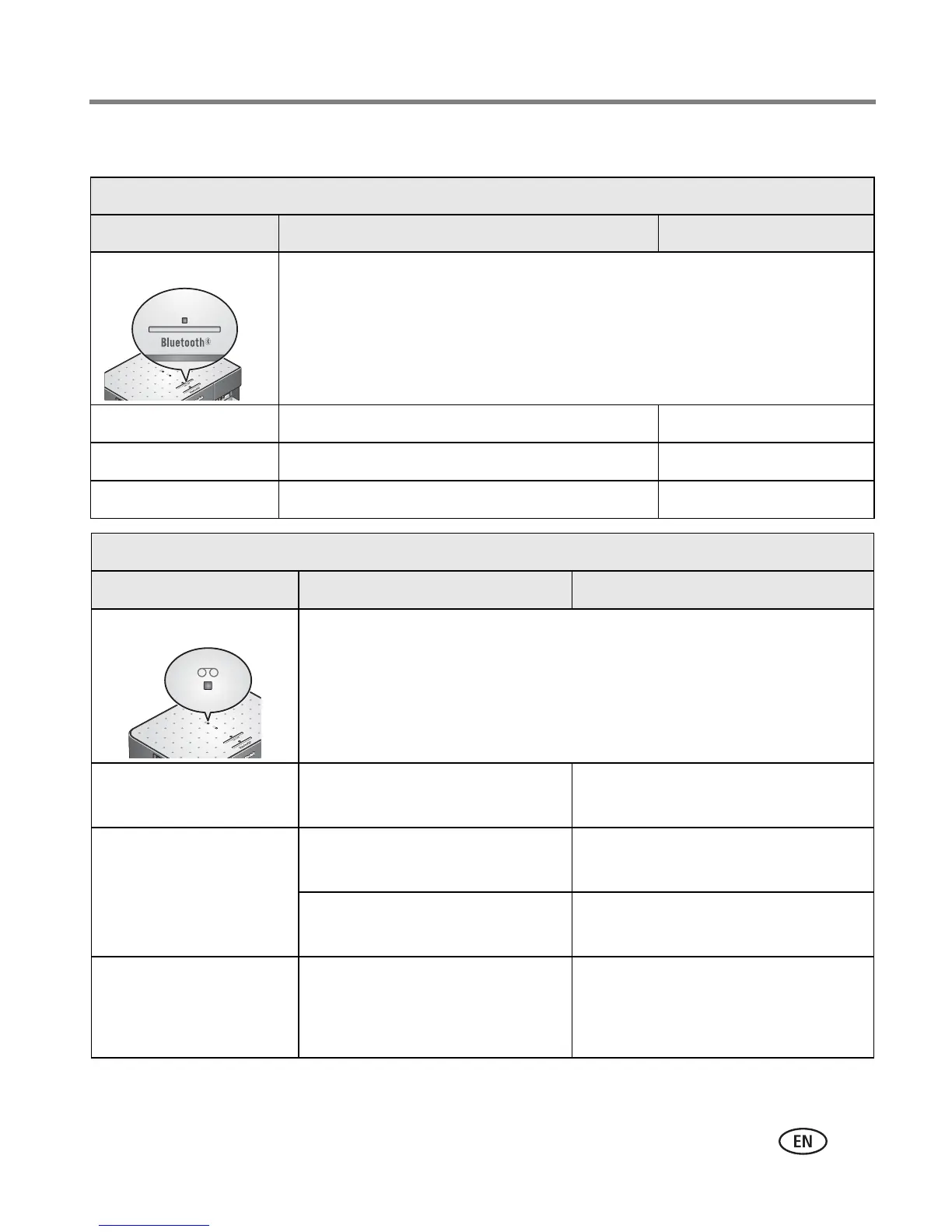 Light off Photo printer not ready to accept image. Press Bluetooth button.
