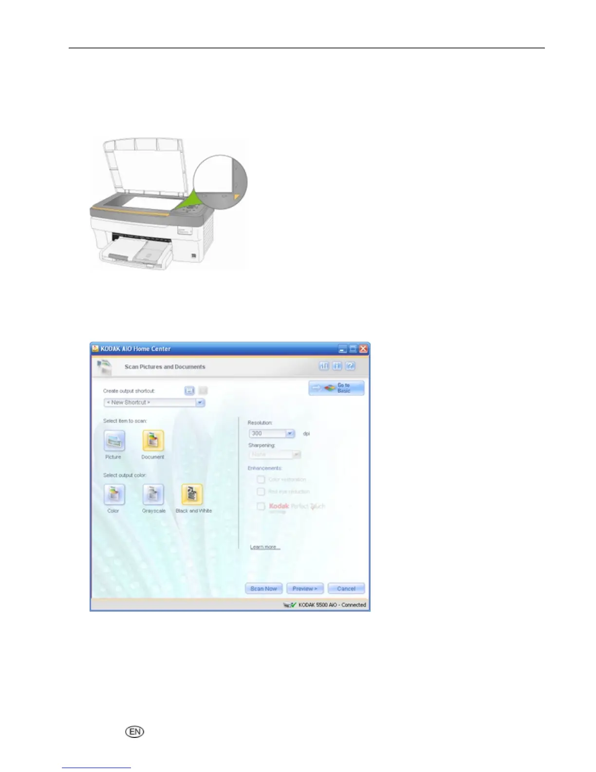 On the main Home Center window, click Scan Pictures and Documents to open the Basic Scan