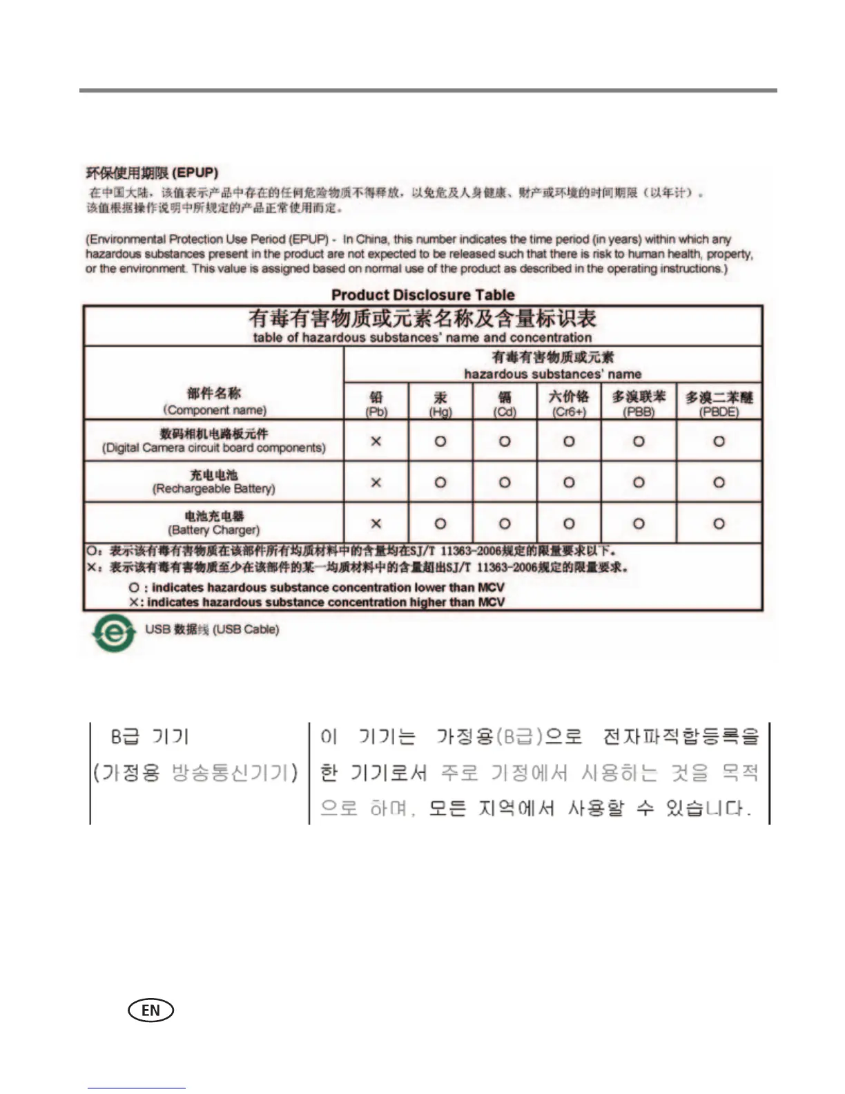 Kodak EasyShare C143 - Regional Compliance Standards; China RoHS and Korean Compliance
