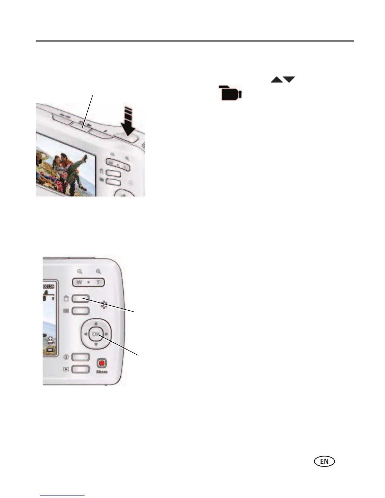 After you take a picture/video, the LCD briefly displays the picture or the first frame of