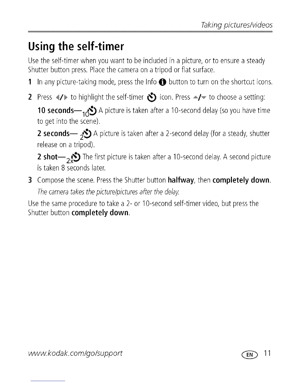 Usethe self-timerwhenyouwant to be includedin a picture,or to ensureasteady