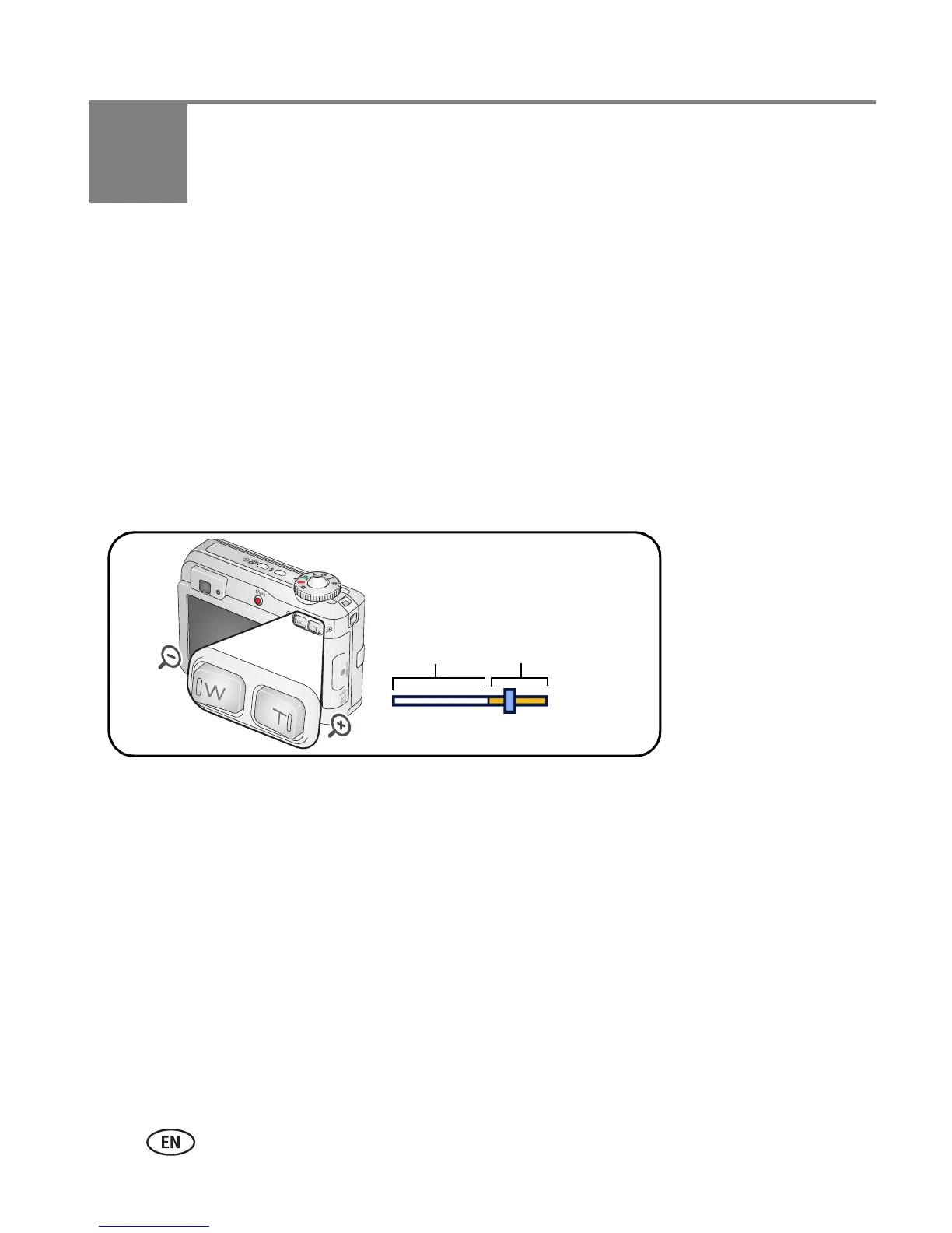1 Press the Telephoto (T) button to the optical zoom limit (3X). Release the button,