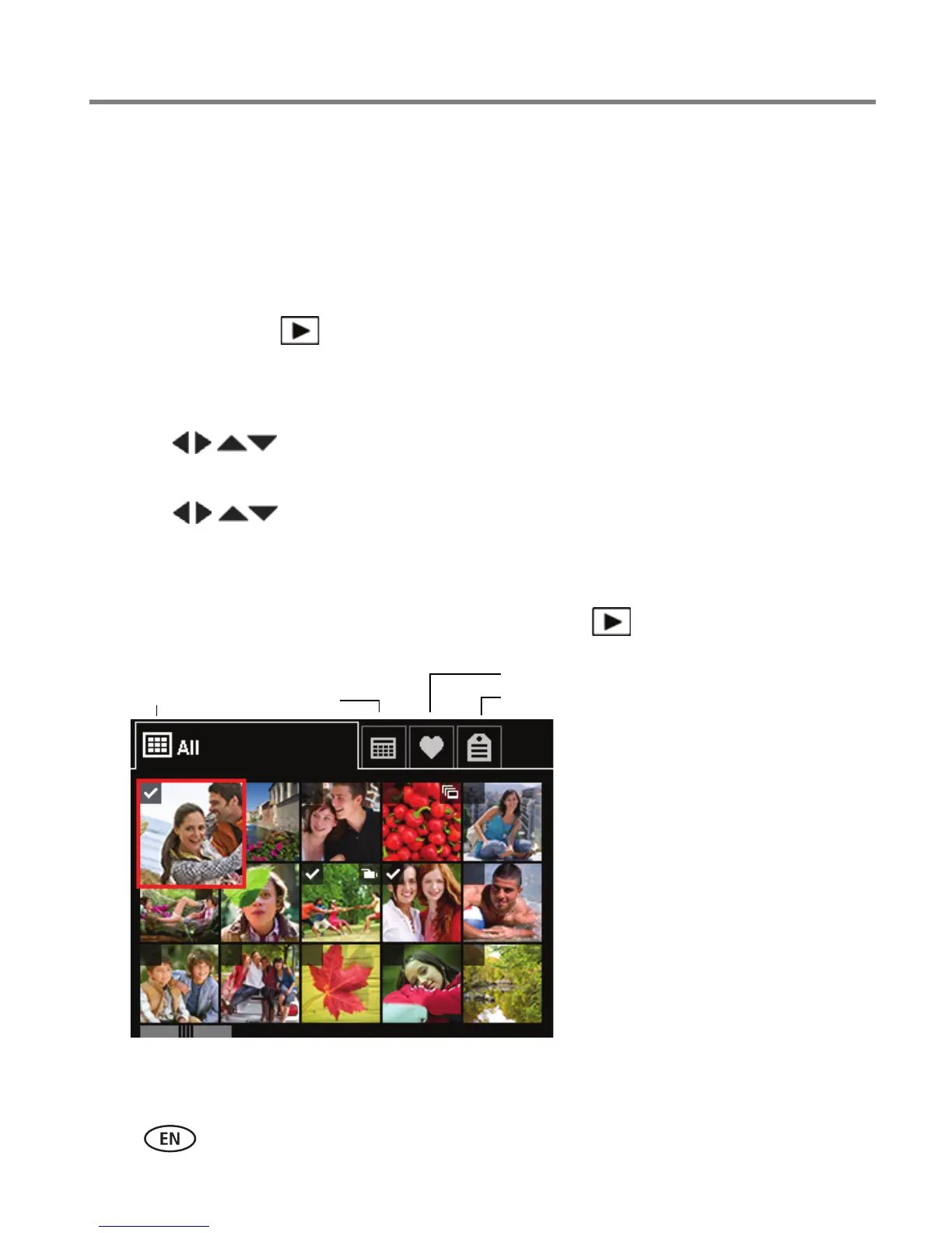 3 Press to choose a tab and sort pictures/videos by All, Date, Favorite, or