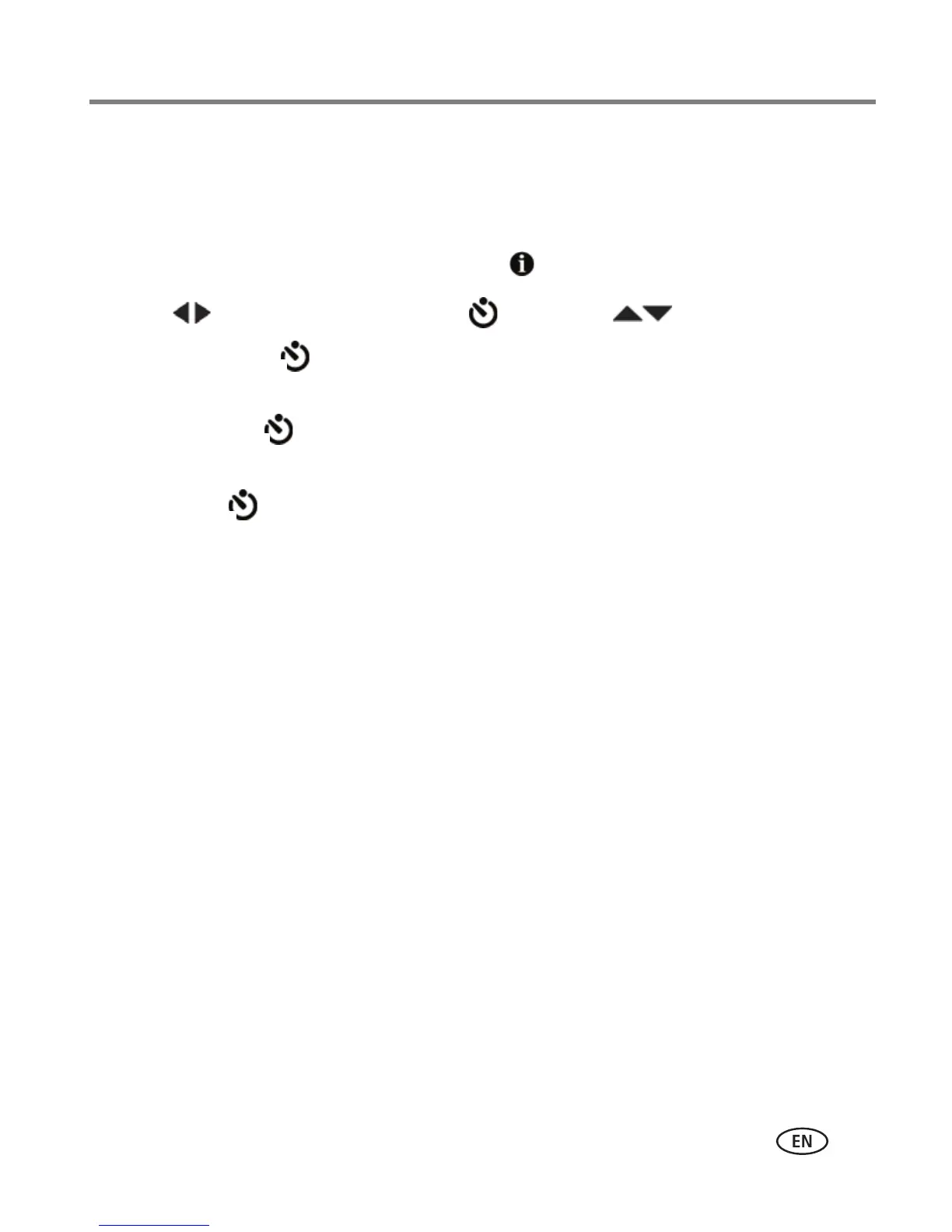 2 Press to highlight the self-timer icon. Press to choose a setting: