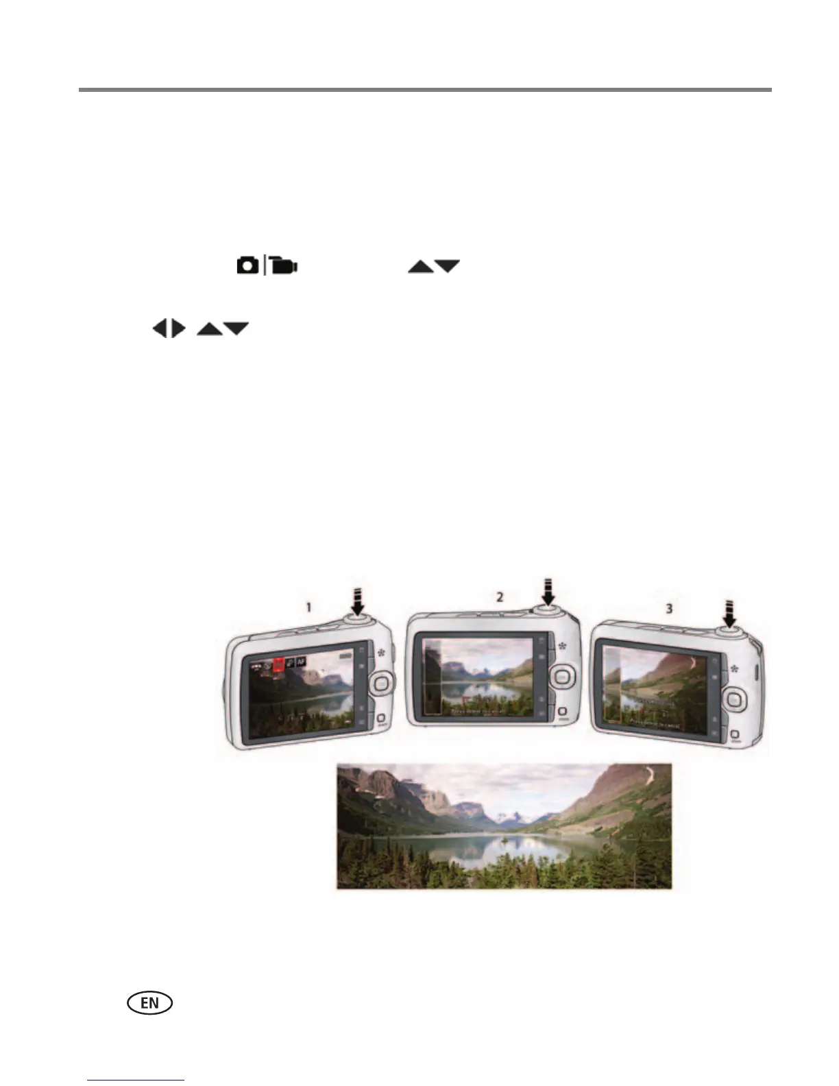 NOTE: For best results, use a tripod. Only the panoramic picture is saved; individual pictures are not.