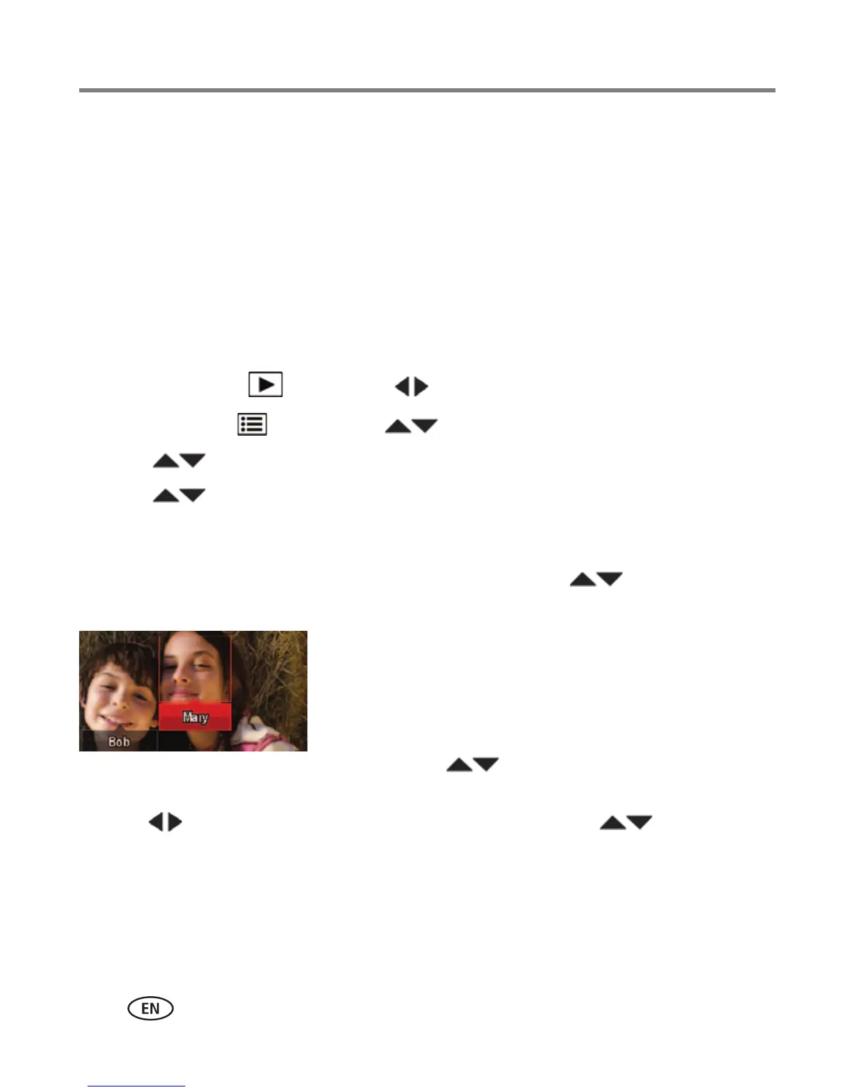 face. To resolve an incorrect name or a question mark, press to select a face,