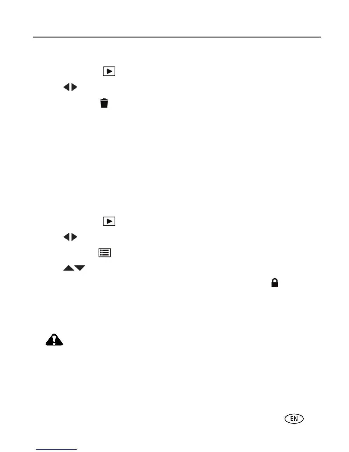 NOTE: To delete protected pictures/videos, remove protection before deleting. (See Protecting