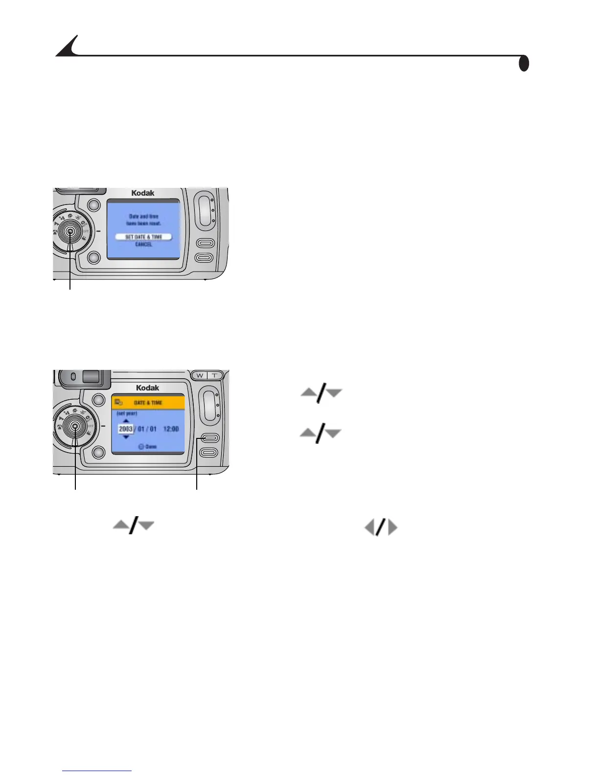 4 Press to adjust the date and time. Press to advance to the