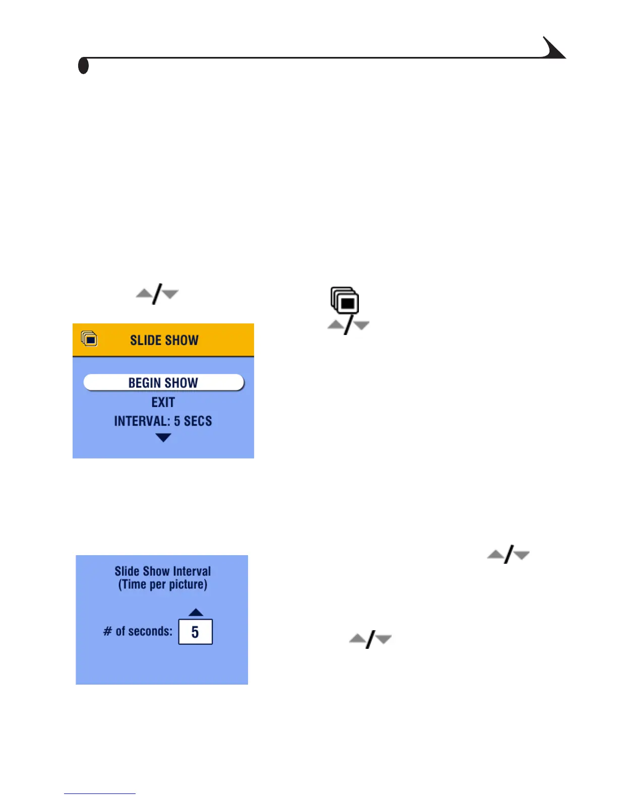 The default interval setting displays each picture for 5 seconds. You can