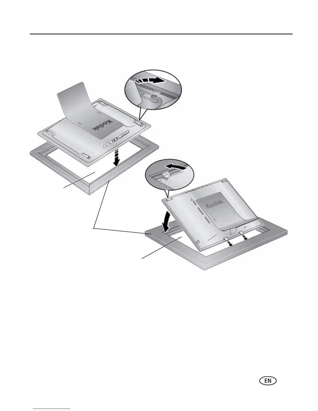 ■ If a deep picture frame places the slot above the clips, carefully bend the clips