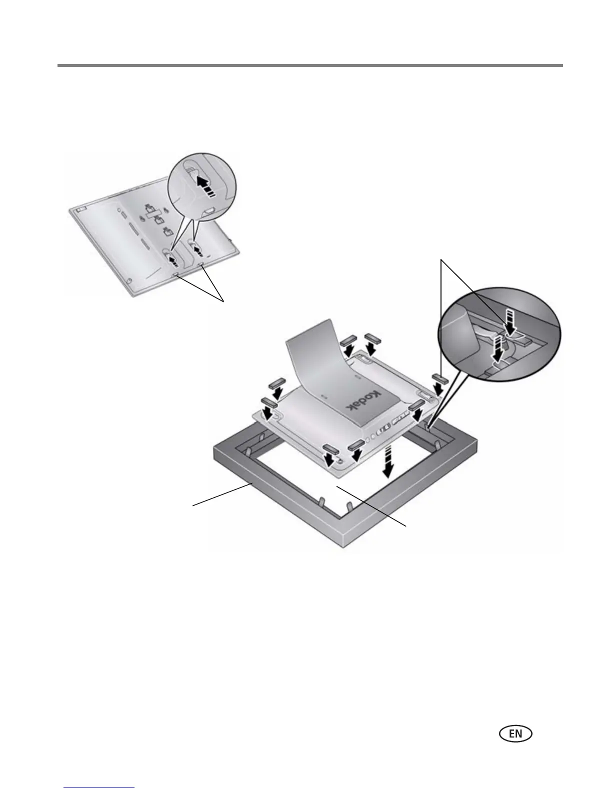 digital frame’s back panel and the metal tabs.