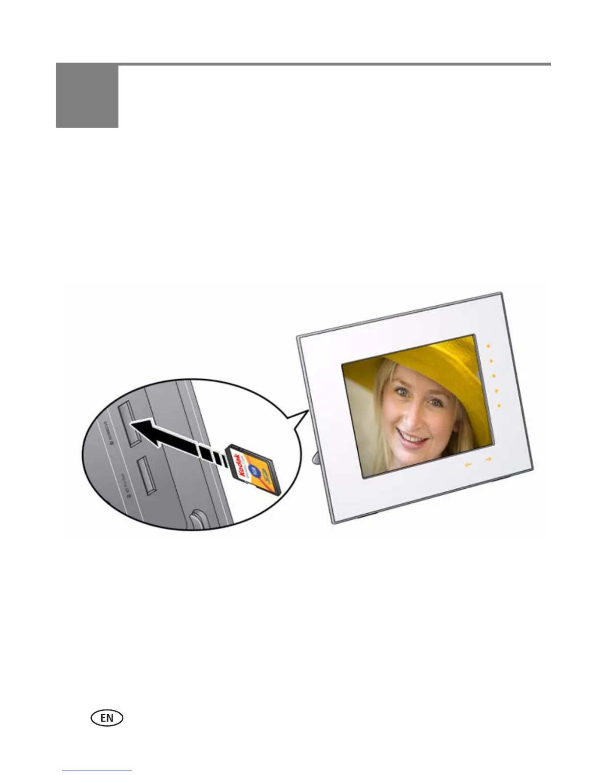 NOTE: Your frame may have pre-loaded pictures, which start playing if you do not insert a memory card or