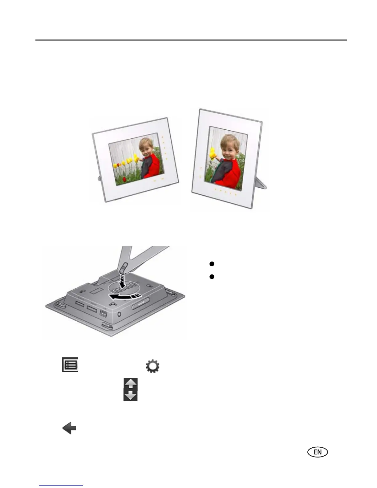Your frame is set up to display pictures and videos in landscape orientation. You can