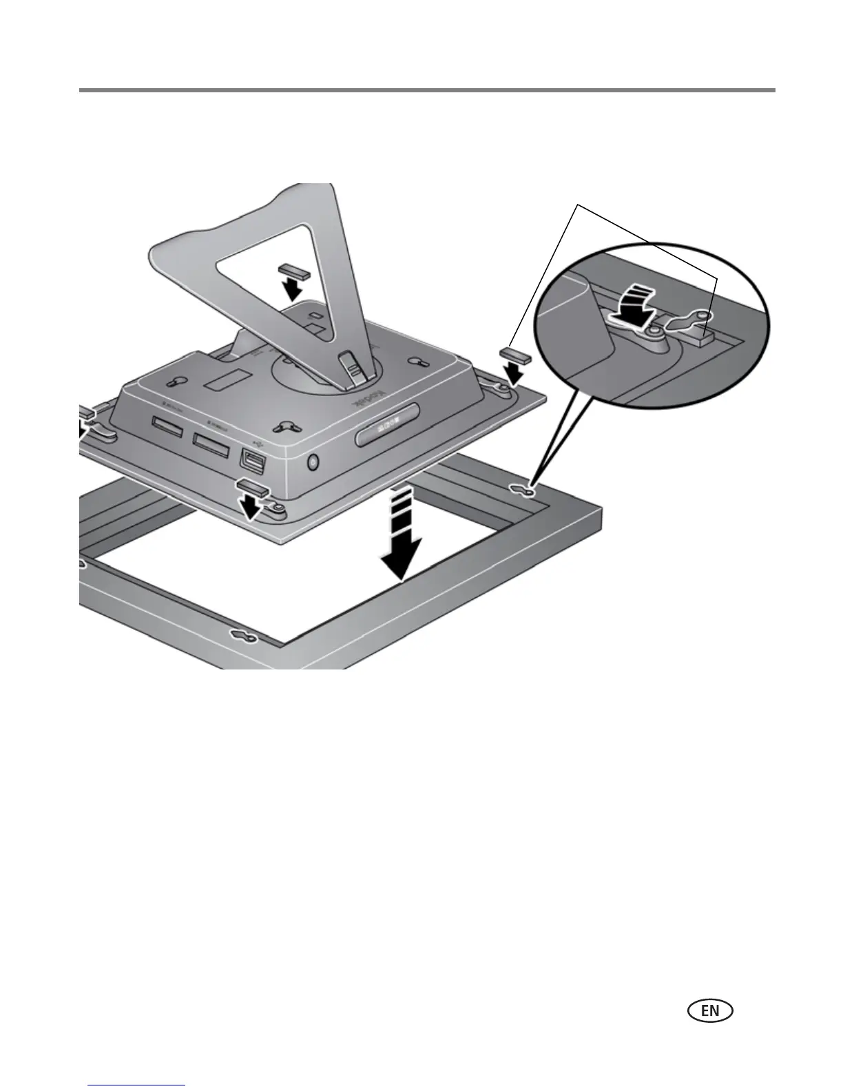 ■ Use the included self-stick foam spacers to fill any gap between the digital frame’s