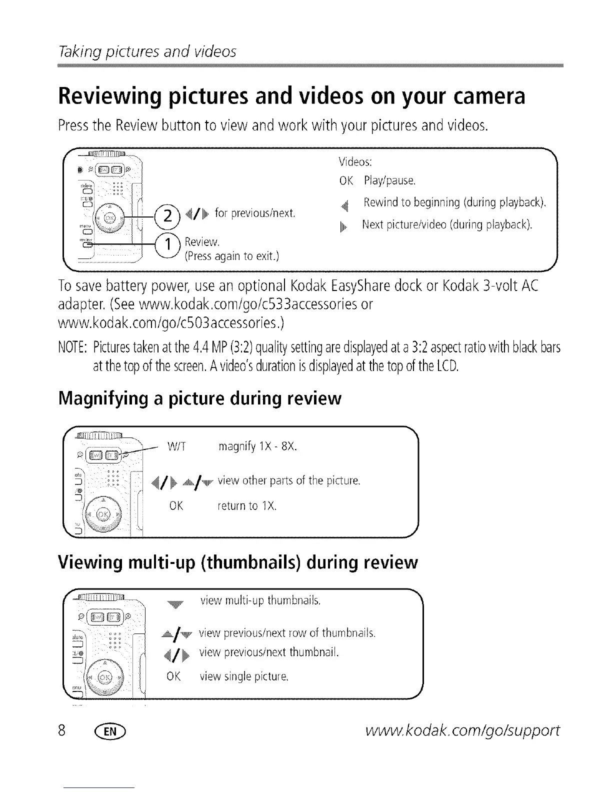 Tosavebatterypower,useanoptional KodakEasySharedockor Kodak3-voltAC