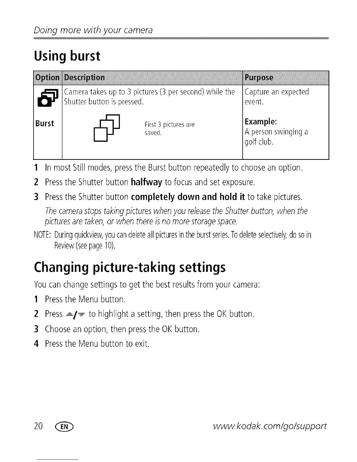 1 in mostStill modes,pressthe Burstbutton repeatedlyto choosean option.
