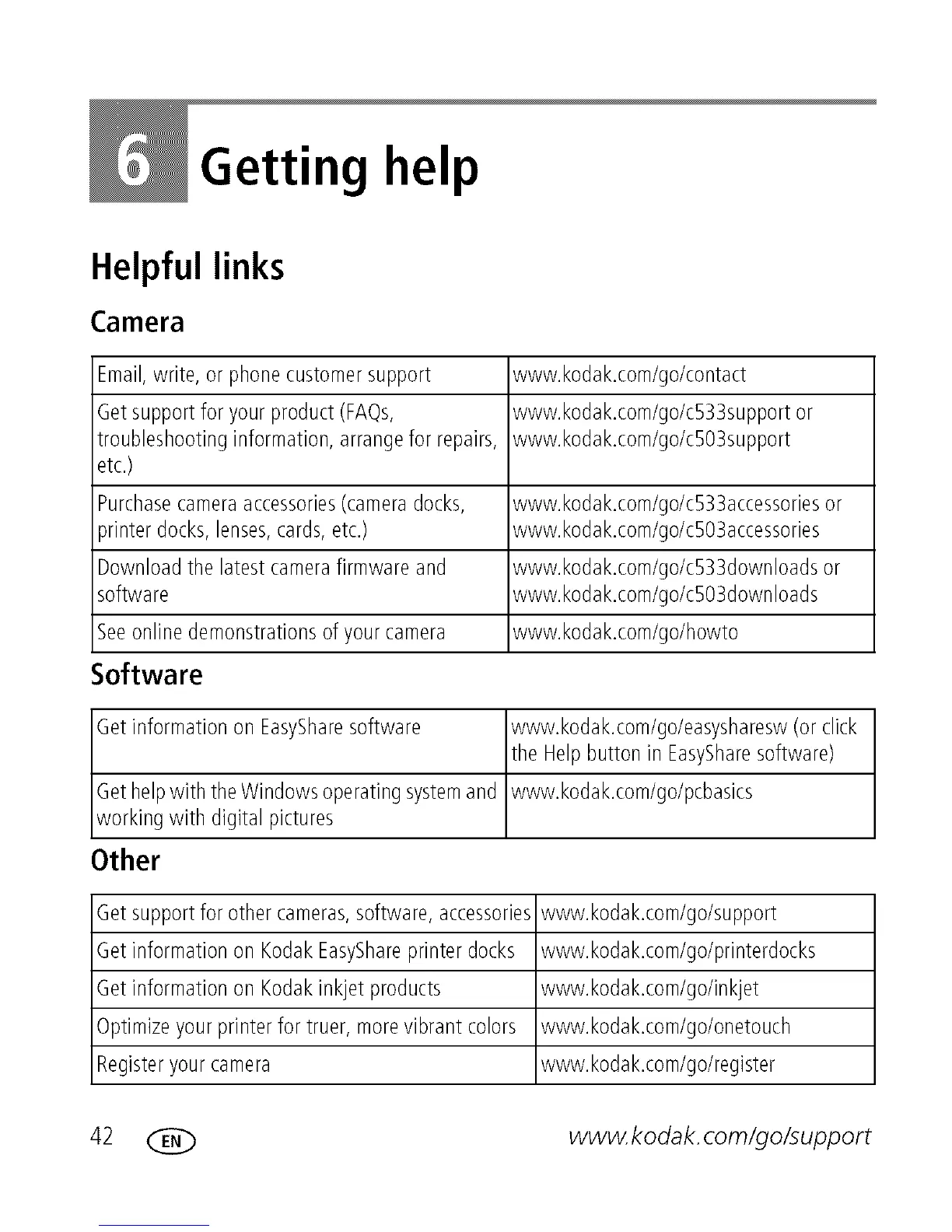 Getsupportfor your product(FAQs, www.kodak.com/go/c533supportor