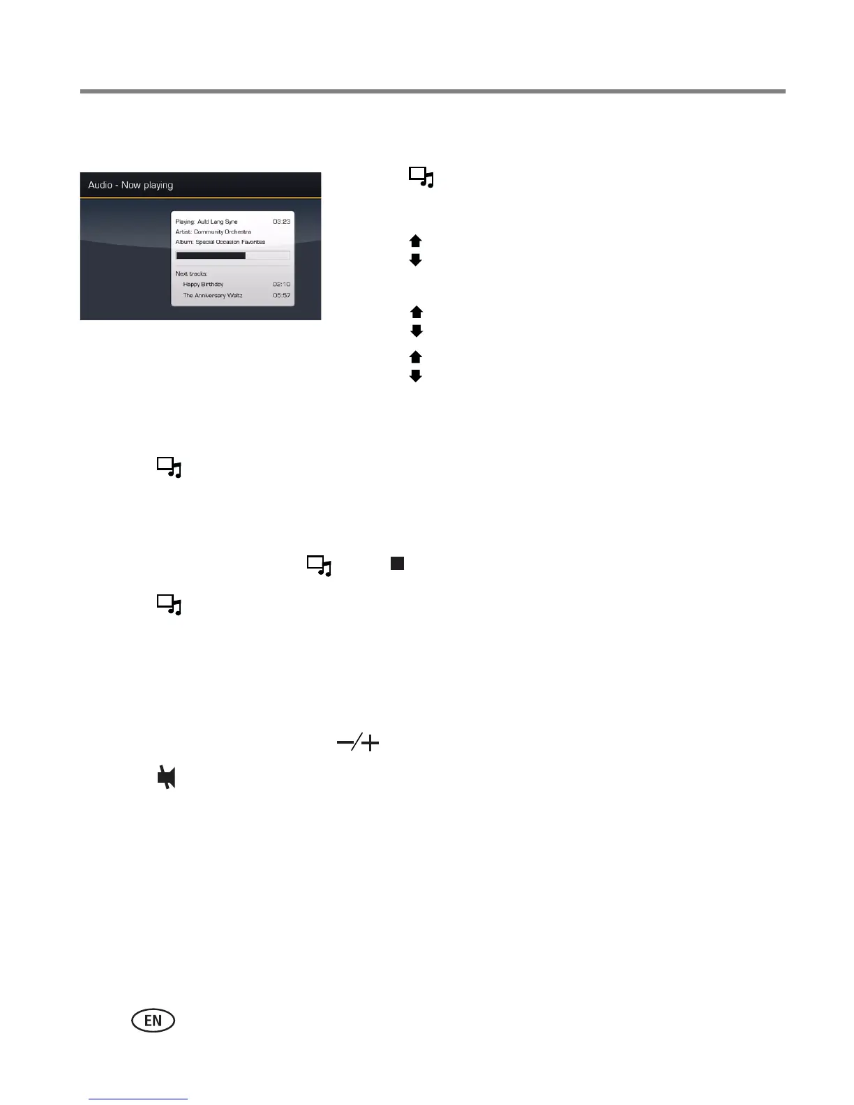 6 To turn off music, press , then .