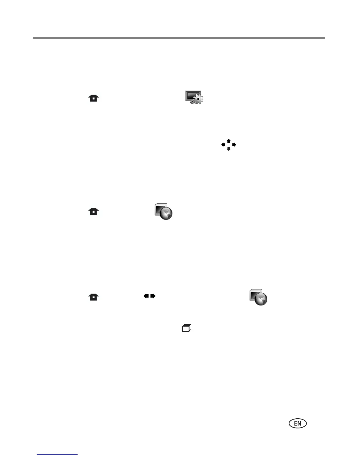 2 Press Home , then press to highlight Kodak gallery , then press OK.