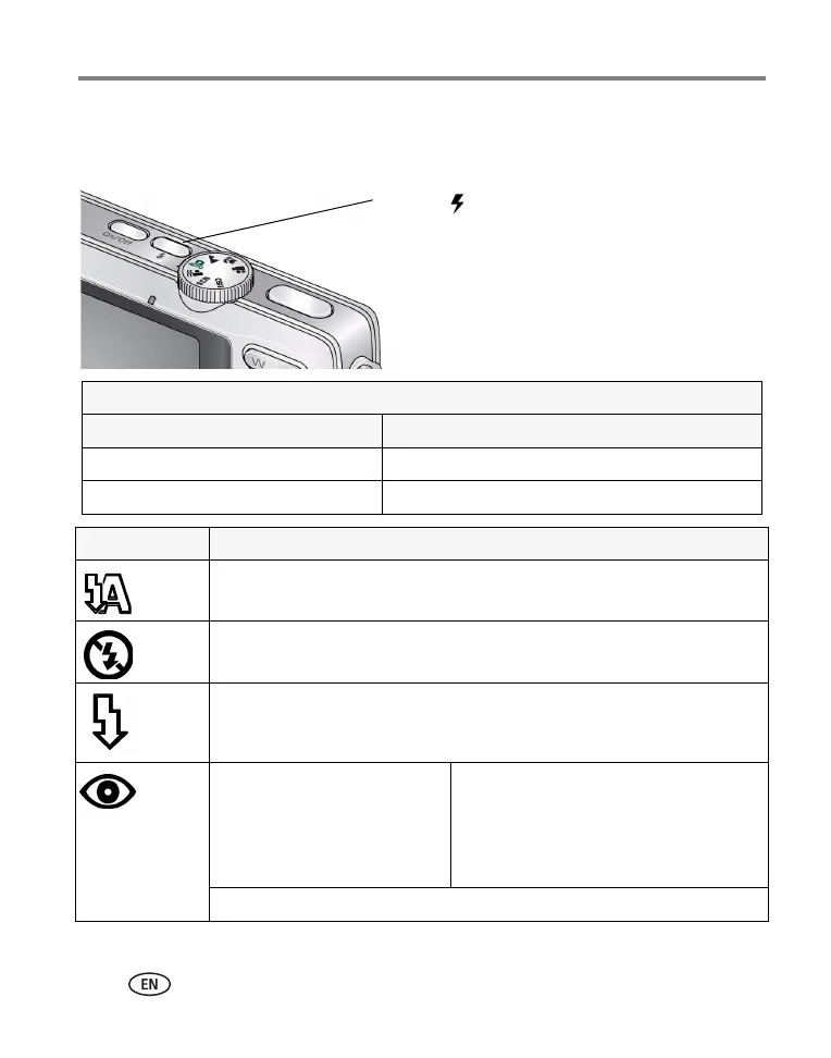 The current flash mode appears in the LCD screen.