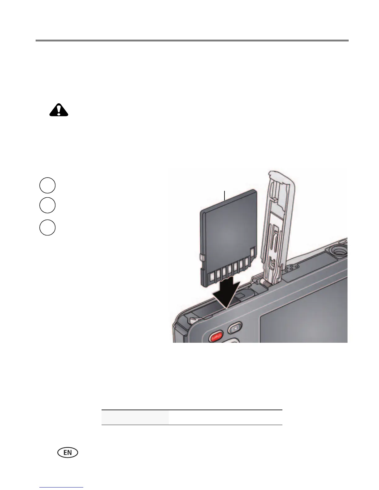 damage. Inserting or removing a card while the camera is on may