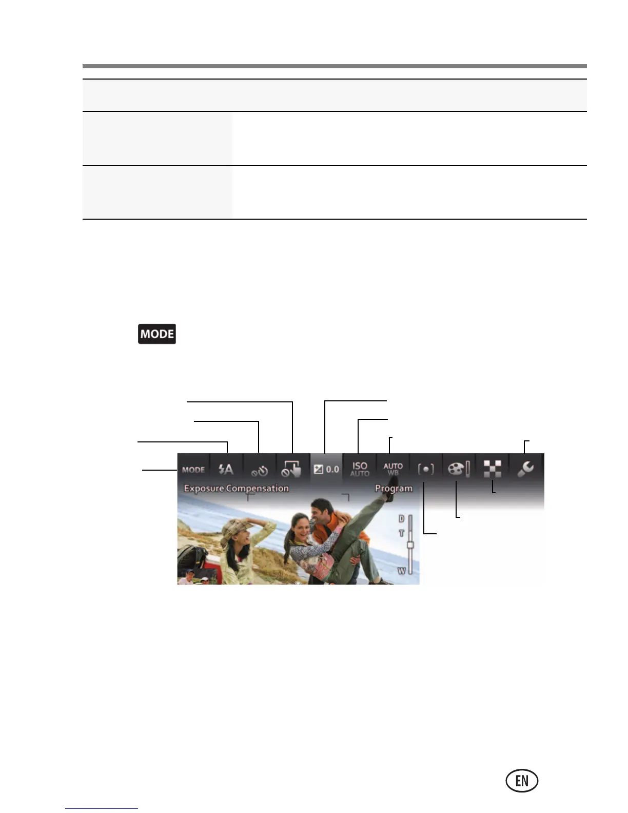 Settings that you change in Program mode apply only to pictures taken in Program