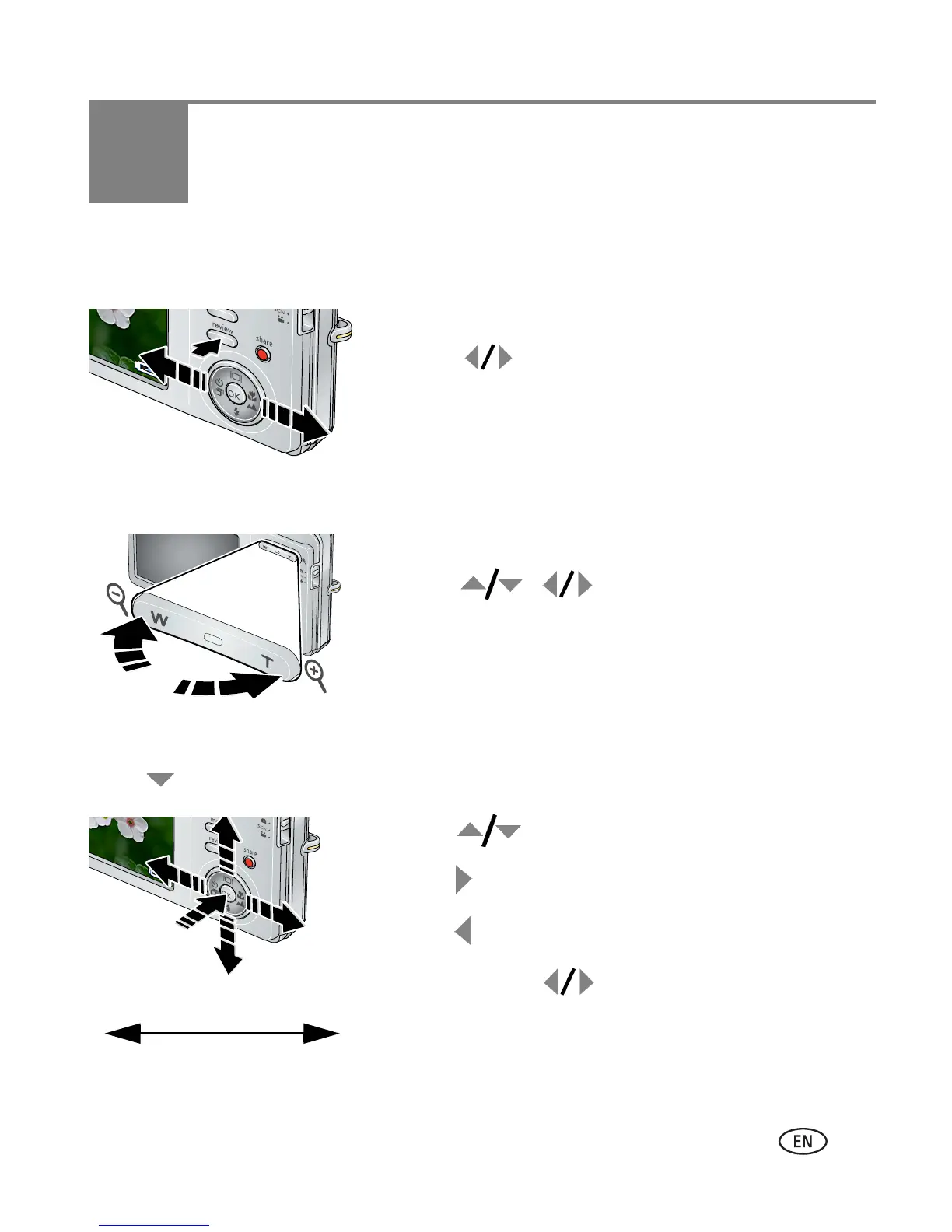 2 Press for previous/next picture/video.