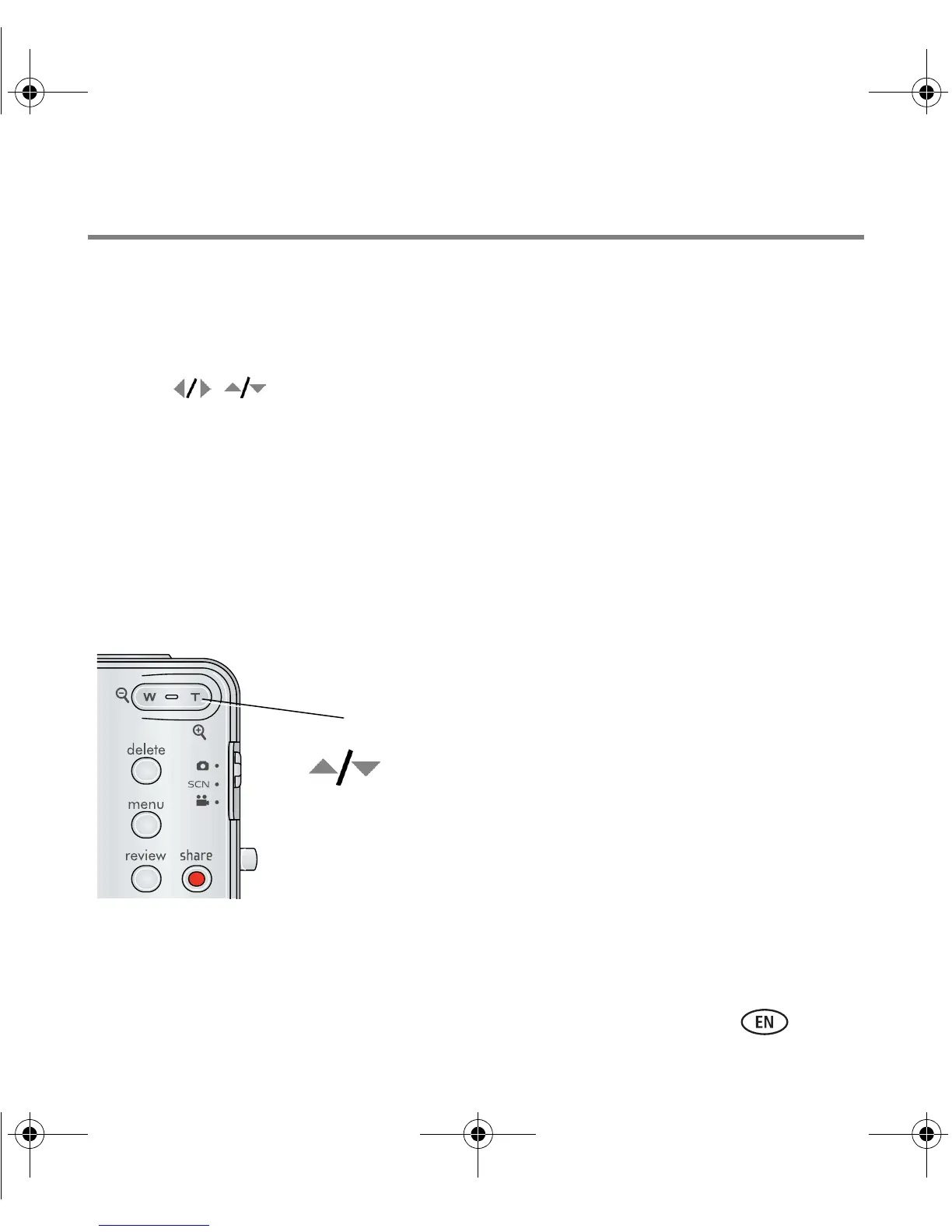 Highlight a menu choice, then press the Zoom telephoto (T) button.