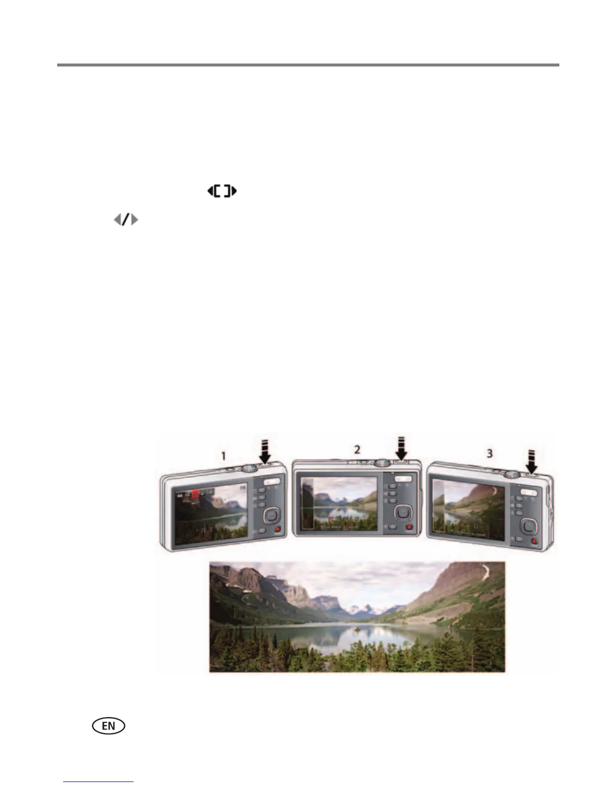 NOTE: For best results, use a tripod. Only the panoramic picture is saved; individual pictures are not.