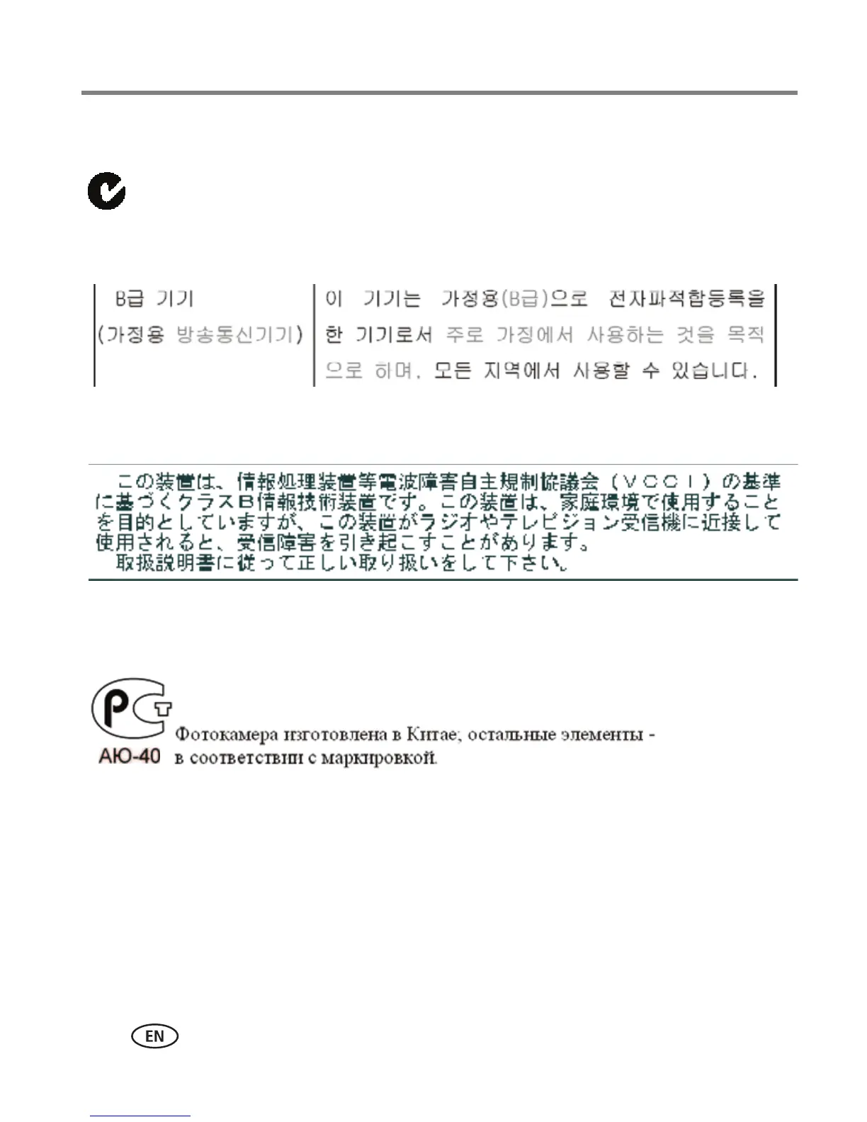 Kodak EASYSHARE MD81 - Australian C-Tick; Korean Class B ITE; Russian GOST-R