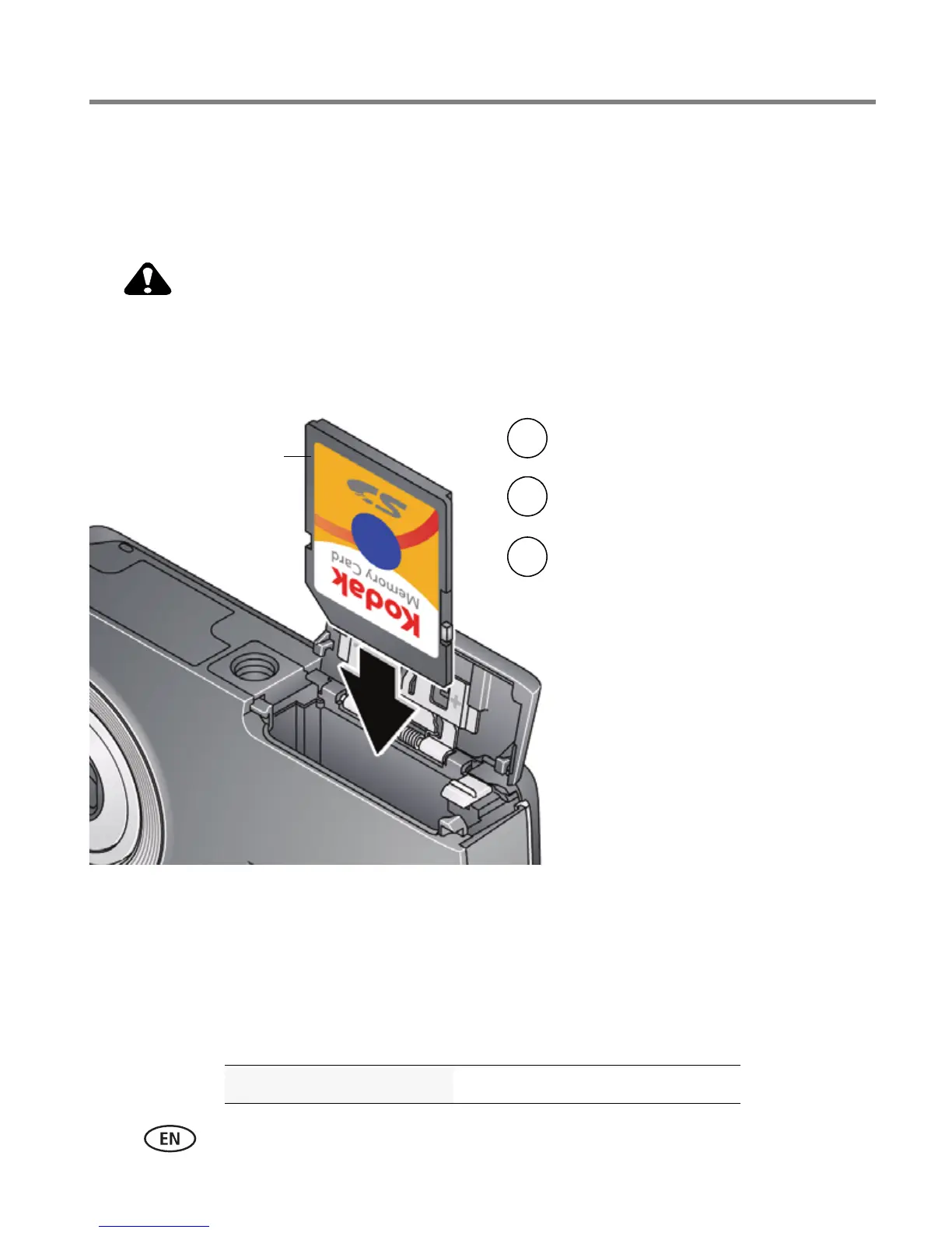 Inserting or removing a card while the camera is on may damage the