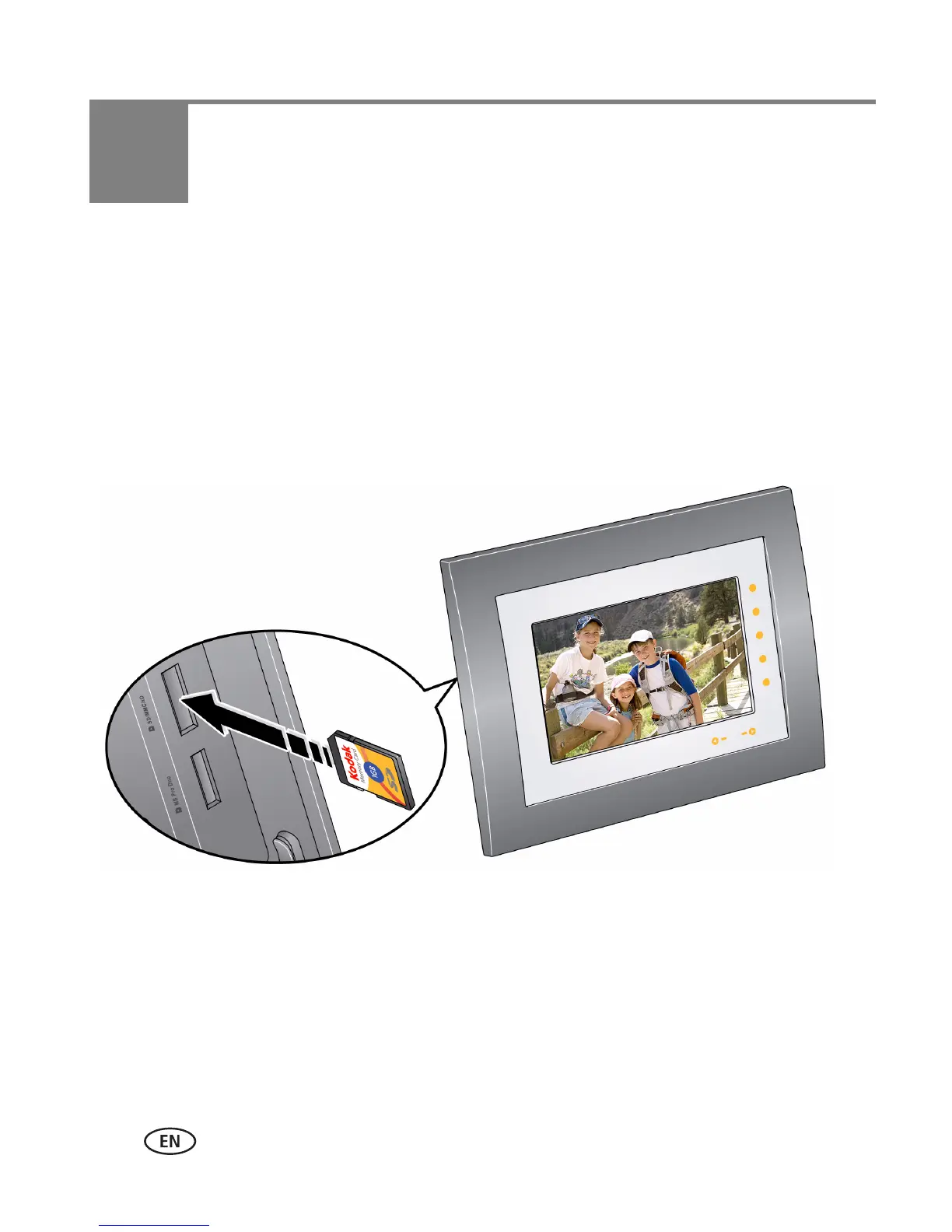 NOTE: Your frame may have pre-loaded pictures, which start playing if you do not insert a memory card or