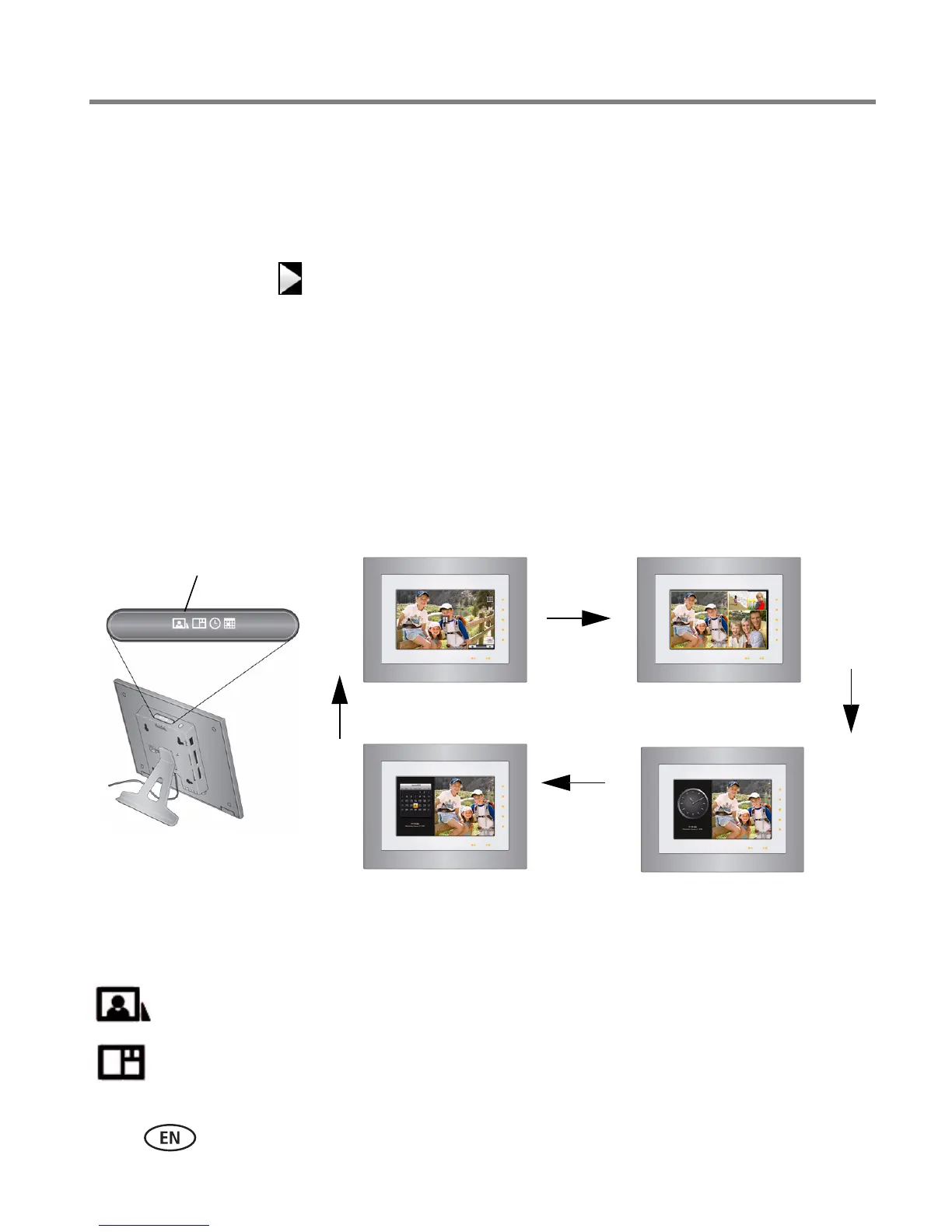 Press the Mode button to access the four slide show viewing modes on your frame: