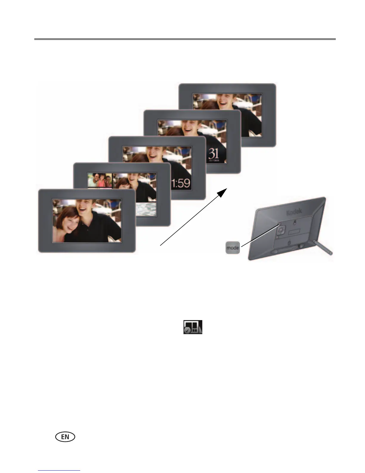 ■ Available viewing modes are: single picture, collage, clock, and calendar.