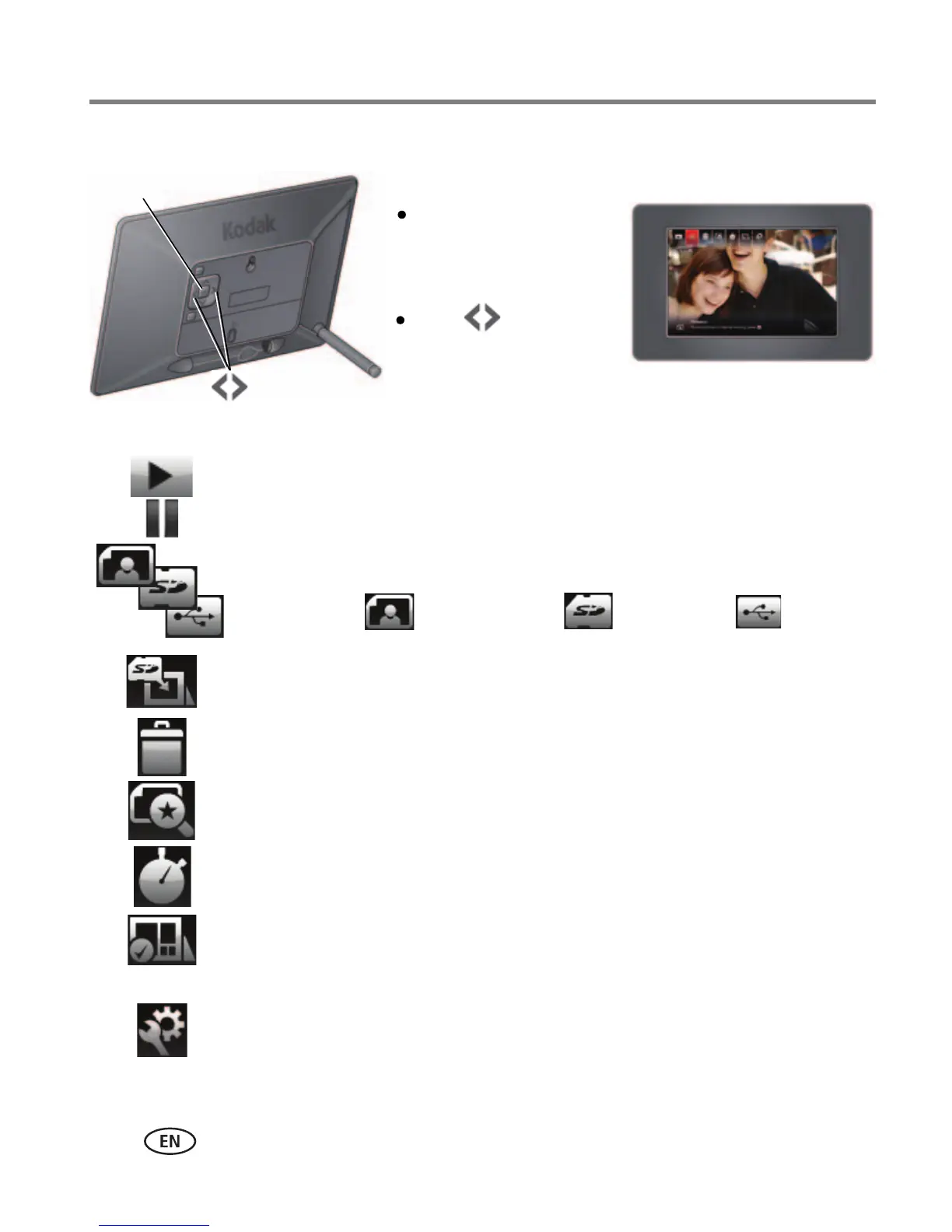 Copy—copy pictures to the frame, appears when a memory card or USB