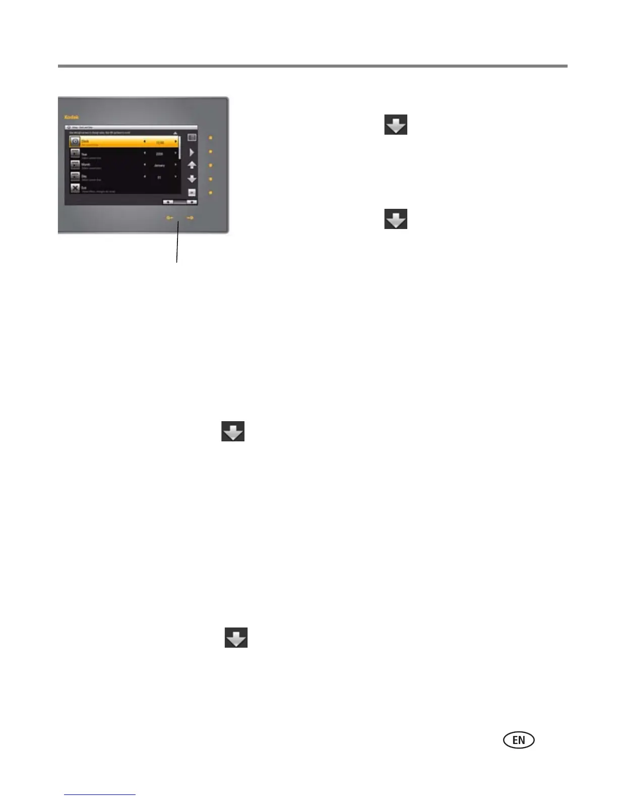 Tap the down arrow to highlight Clock, then