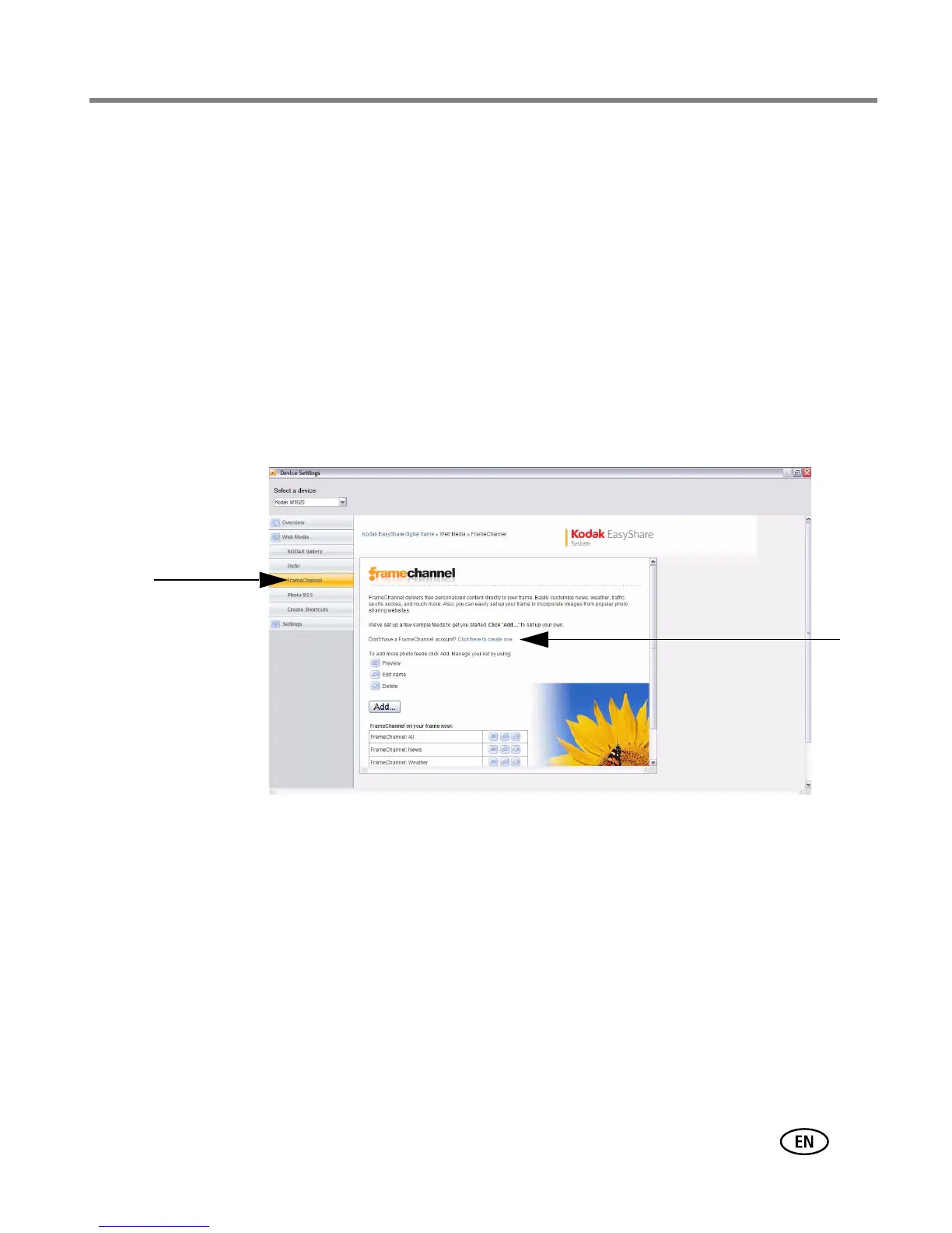 4 When you are finished setting up your FRAMECHANNEL account, or if you already